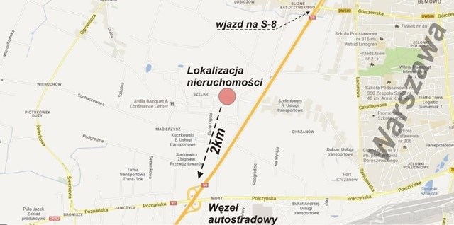 Teren zlokalizowany jest około 1,0 km od wjazdu na trasę S8 oraz w pobliżu węzła autostradowego S8/A2 Mory.
